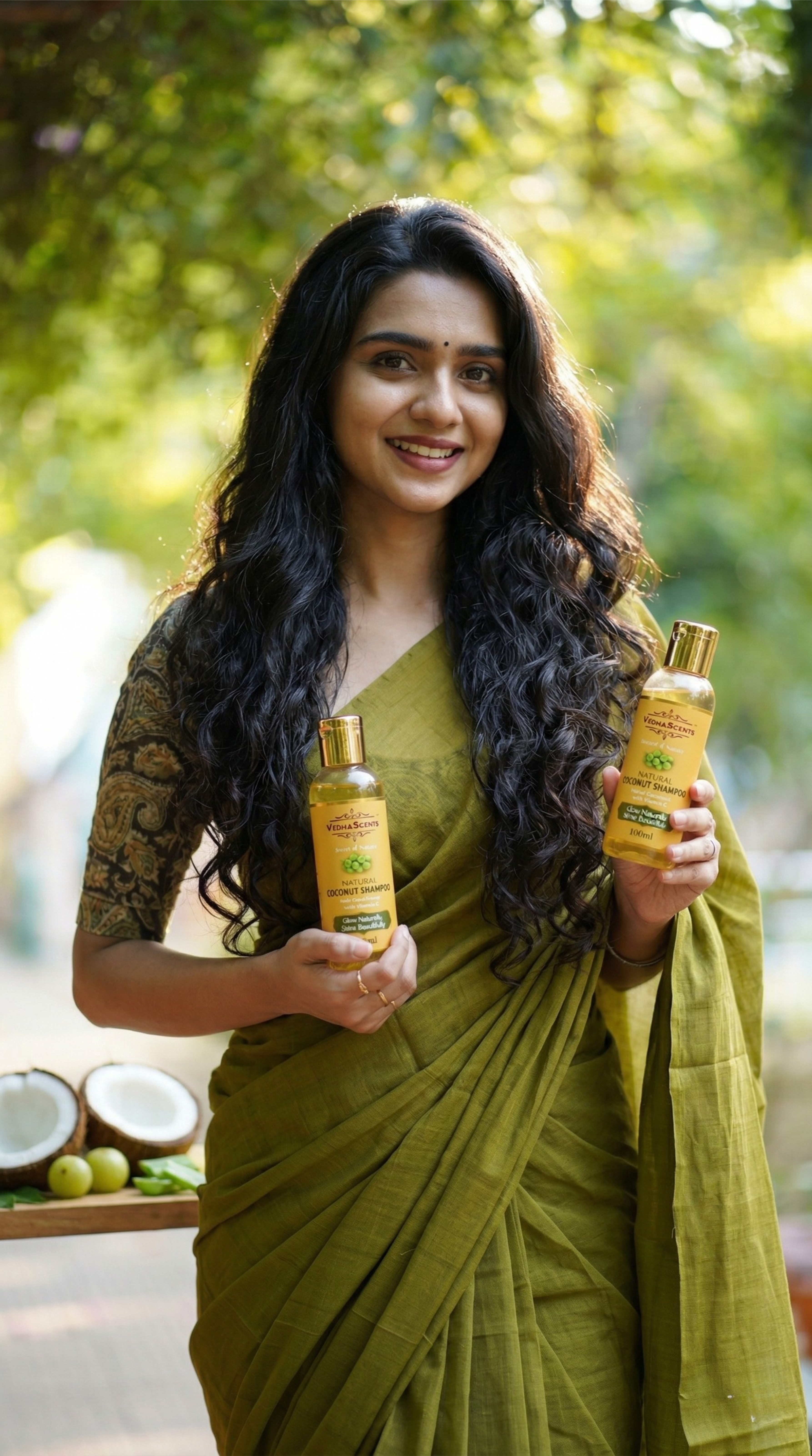 VedhaScents Premium Natural Coconut Shampoo with Conditioner|Anti-Hairfall & Dandruff | Enriched with Vitamin E & Amla for Soft, Silky, Smooth Hair | Ayurvedic Hair Care | Anti-Frizz, Nourishing, Hydrating Shampoo for Dry, Damaged Hair | 100ml