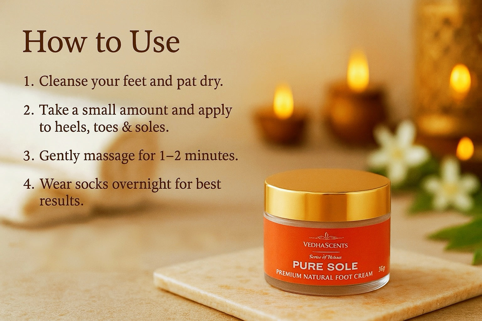 VedhaScents Pure Sole Premium Natural Foot Cream|Ayurvedic Cream for Cracked Heels, Dry Feet & Rough Skin Repair | Deep Moisturizing Heel Softening Cream With Natural Ingredients for Intense Hydration, Healing & Smooth Feet (50g)